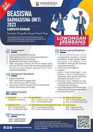 RILISJATENG.COM- Demi terus mengupayakan pemerataan akses pendidikan terutama pendidikan tinggi di Kabupaten Rembang, pemerintah Kabupaten Rembang melalui Dinas Pendidikan, Pemuda dan Olahraga melanjutkan program unggulan Beasiswa Prestasi Pendidikan Tinggi di tahun 2023. Pendaftaran akan dibuka mulai tanggal 1 Juni 2023 sampai 31 Juli 2023 Untuk Juknis, Formulir Pendaftaran, dan Formulir Pernyataan bisa dicek melalui link di bawah ini.